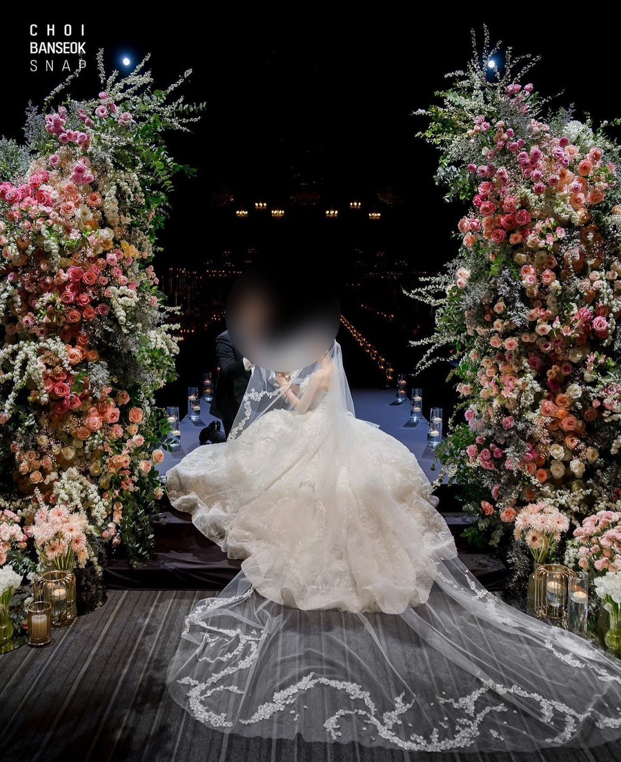 실제로는 저 꽃들 사이에서 혼주분들과 신랑이 하객들을 맞이하고
